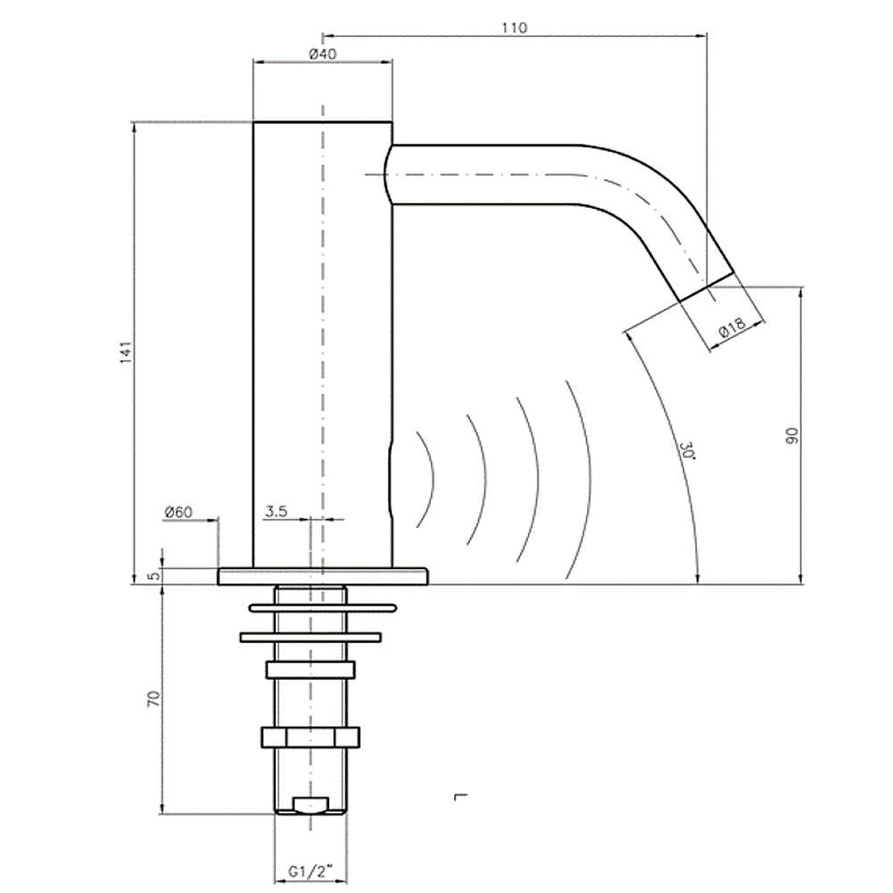 Der Infrarot-Sensor startet den Wasserfluss automatisch und die Mischbatterie schließt selbsttätig nach Beendigung des Waschvorgangs.