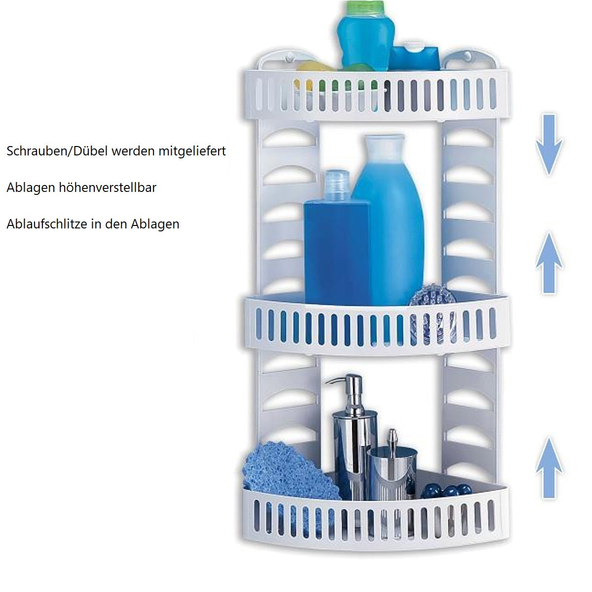 Maße ca. 60 cm Höhe, 25 cm Tiefe, 25 cm Breite. Farbe Weiß. Ideal für Dusche oder Bad-Ecke, platzsparend, leicht zu reinigen.