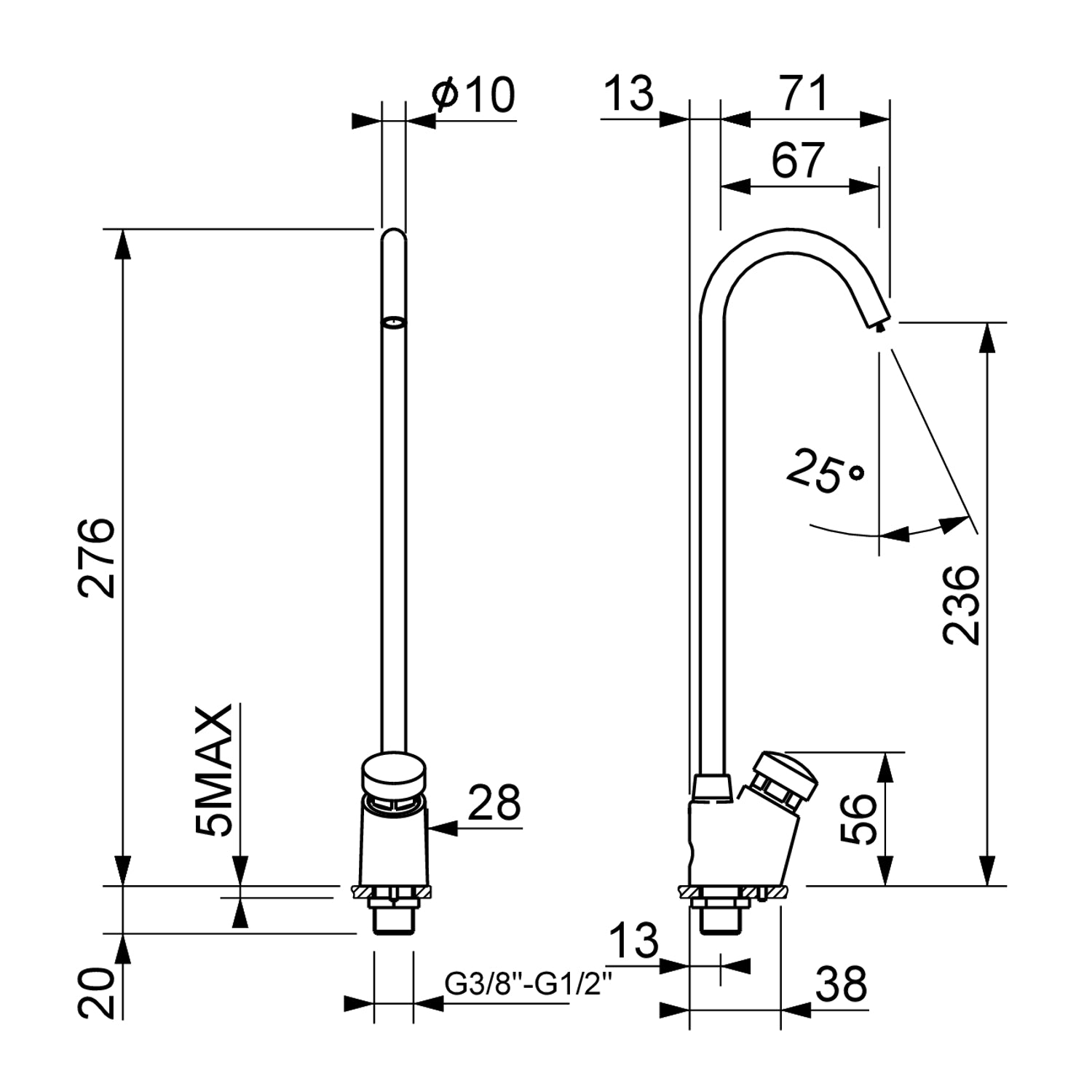 - Höhe bis Auslauf: 236 mm