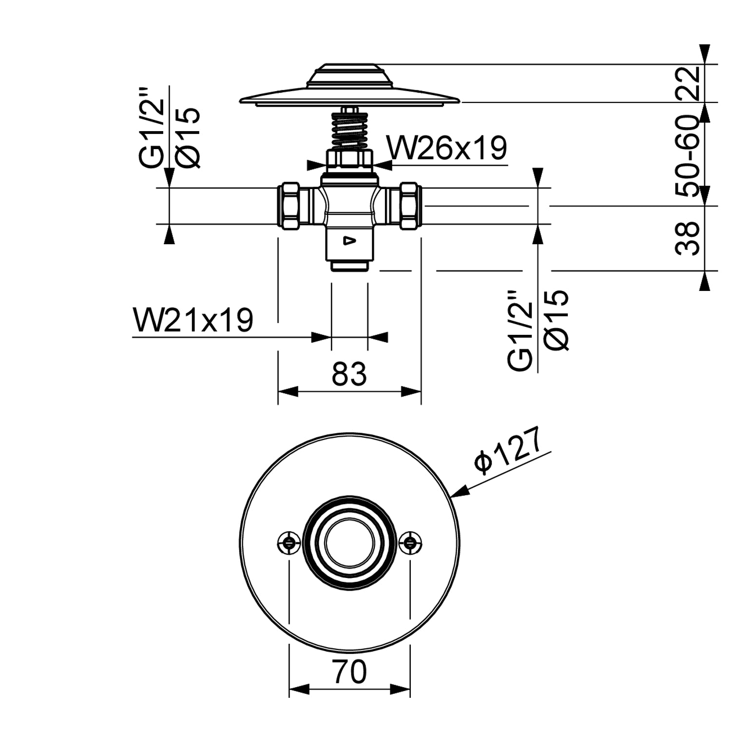 • Anschlüsse: G1/2", Ø15