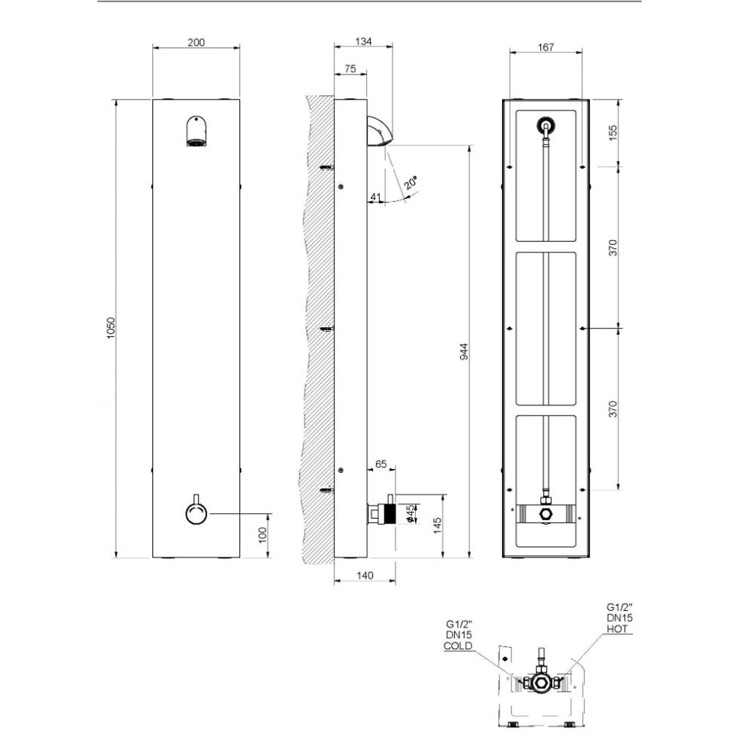 Diese zeitgesteuerte, selbstabschaltende Duschsäule ist aus Edelstahl ( AISI 304) gefertigt. Eingehend wird eine Warmwasser- und eine Kaltwasserleitung benötigt.