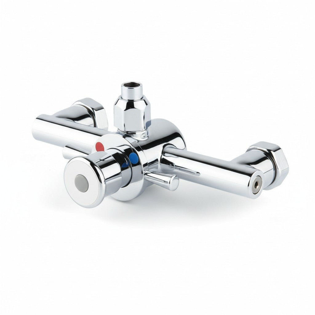 Diese zeitgesteuerte, selbstabschaltende Armatur ist für Duschanwendungen vorgesehen. Eingehend wird eine Warmwasser- und eine Kaltwasserleitung benötigt. Die Mischerfunktion erfolgt über den separaten Temperaturwähler.